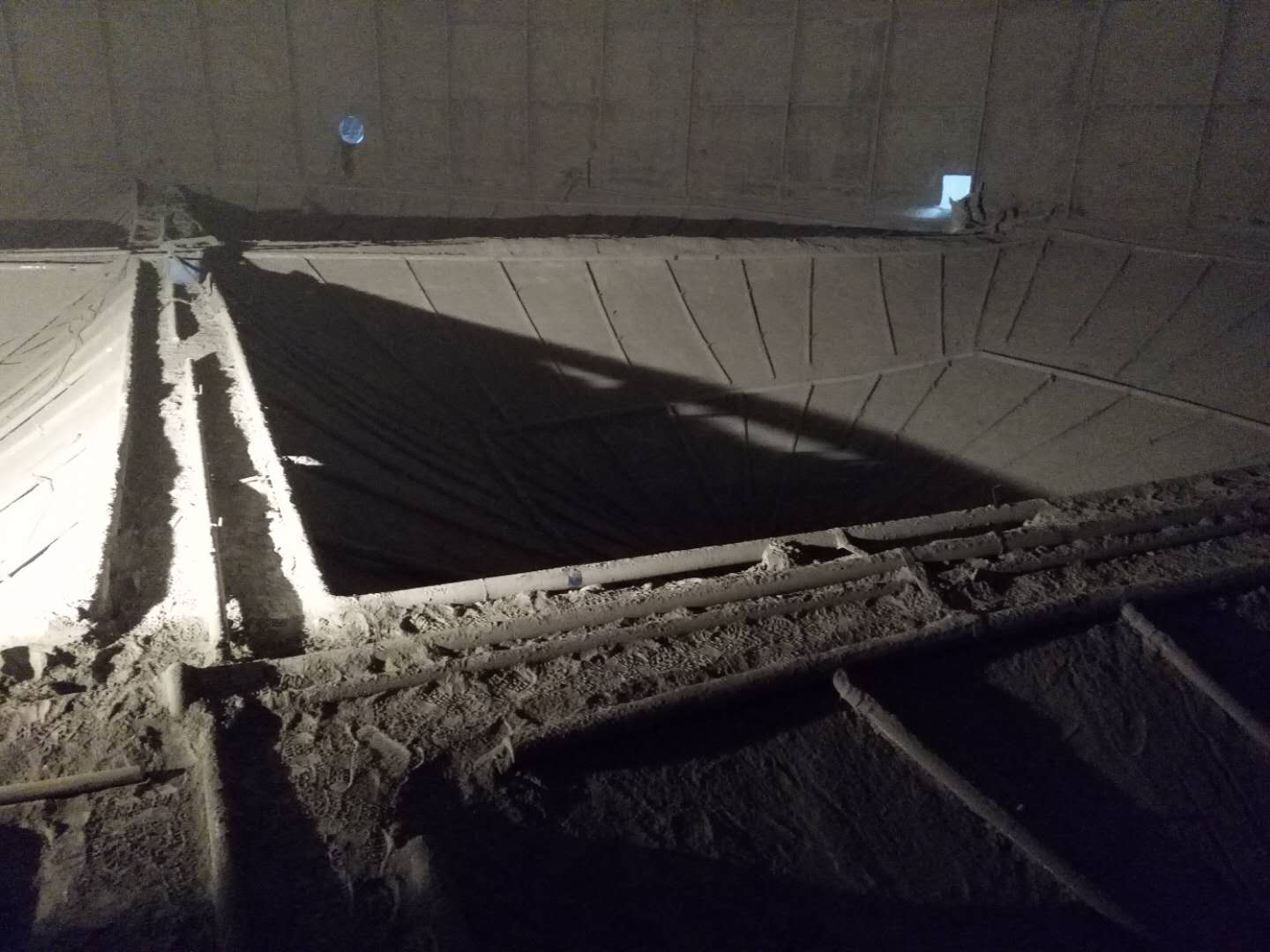 4萬噸庫存水泥鋼板倉的清理現場
